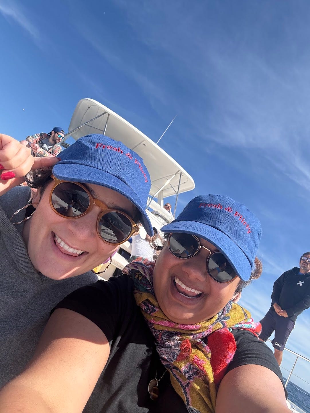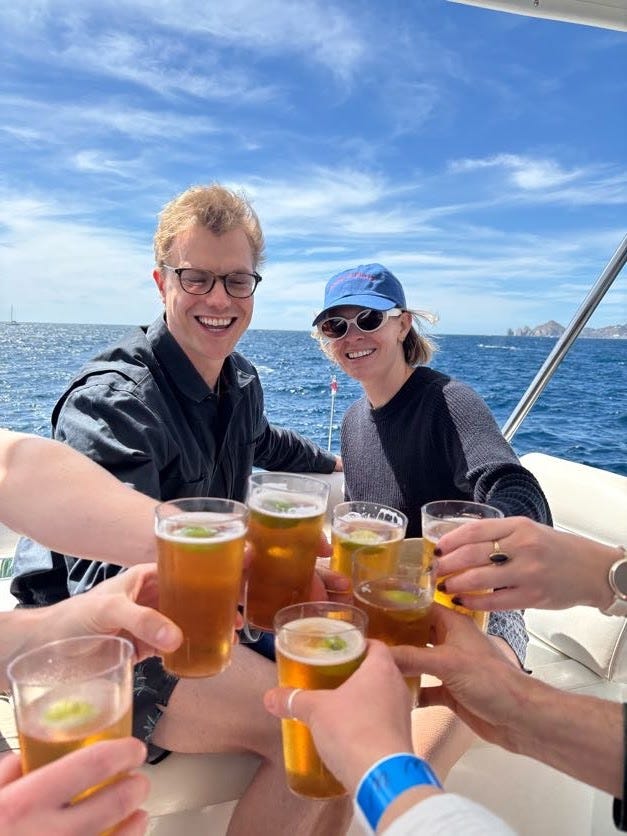 Once onboard the catamaran, clutching mimosas and binoculars, we watched humpback whales launch themselves out of the sea like they were auditioning for a Pacific Life commercial. Like the whales, we had traveled to Baja to celebrate love—though, in fairness, our cushy flight put their 6,000-mile migration into perspective.