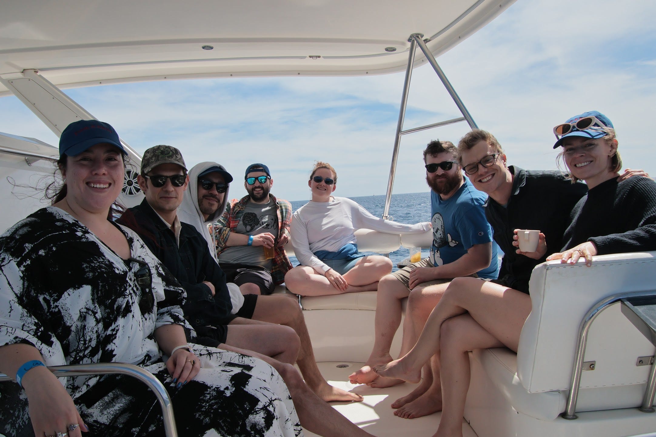 At Ffej’s, we were sailing around Alcatraz when I took it upon myself to be the Pacifico lime guy. I had a plastic lime-shaped squeeze bottle in my jacket pocket, and every time someone reached for a beer, I’d swoop in to add a precise, zesty squeeze before handing it off. I did this so seamlessly and ritualistically, that by the end of the ride, one of Ffej’s friends who I’d compared lists of fake indie band names with earlier in the day turned to me, dead serious, and asked, “Do you always carry lime juice on you?”
