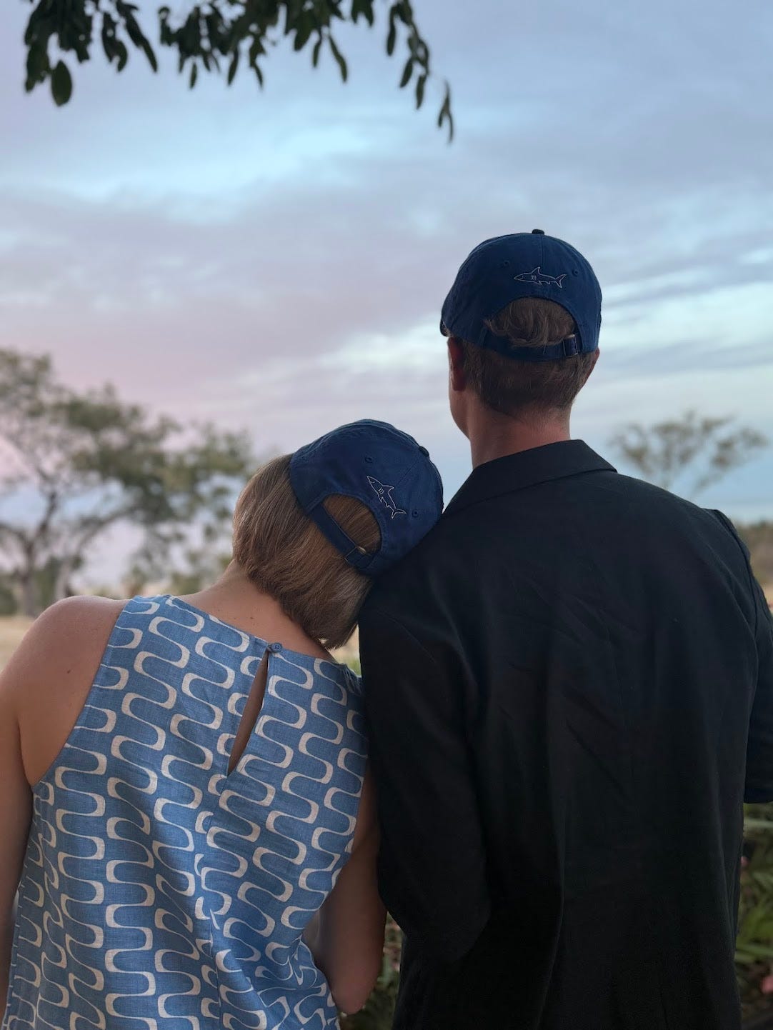 Everyone was wearing blue hats with red text that read: Fresh & Flirty—the theme and dress code of our wedding we had written on Zola. And on the back, in white, was he outline of a shark. When planning a wedding, some things are non-negotiable.