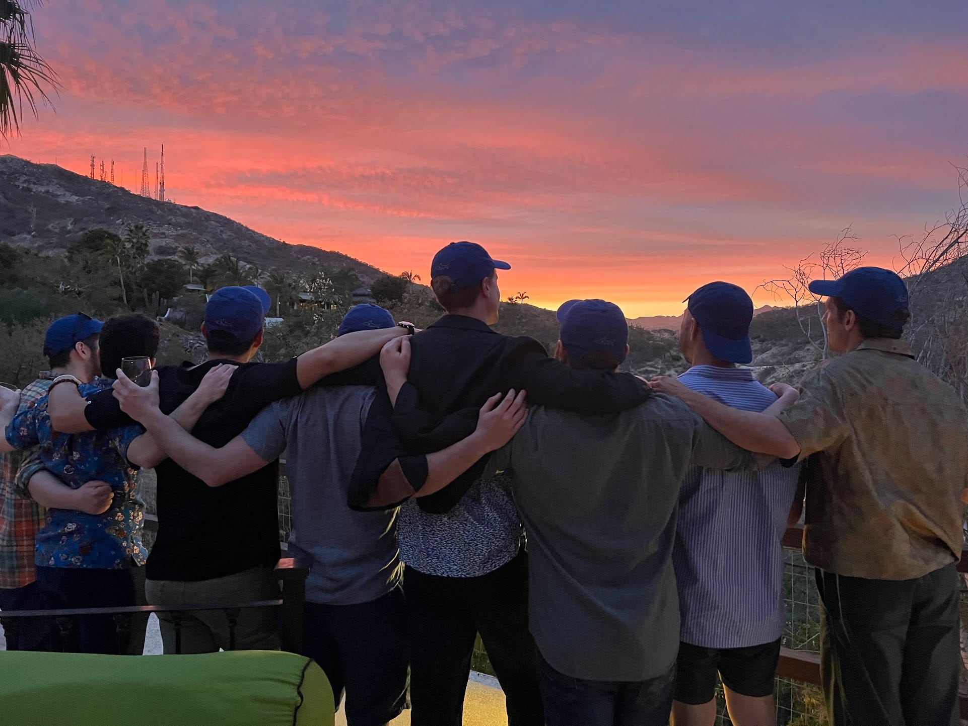 It had started months earlier. A dinner I thought Alexis was having with Hannah was actually a strategy session at Missouri Lounge with Matt Rowett. Over Mezcal Palomas, they sketched out Alexis’s plan to pull off a surprise I wouldn’t see coming—by planning it at my own bachelor party. What I assumed was an airport run to pick up Alexis’s sister, Ashley, was actually cover for Matt and Petra to sneak off to Walmart for roses. Kevin and Kaitlyn brought an absurd number of spa candles, then painstakingly disassembled the bouquets Matt and Petra had bought, petal by petal, to create the romantic tablescape. Charu spearheaded a hat committee, wrangling a group decision on colors—though the shark on the back was unanimously agreed upon as a mandatory design element.