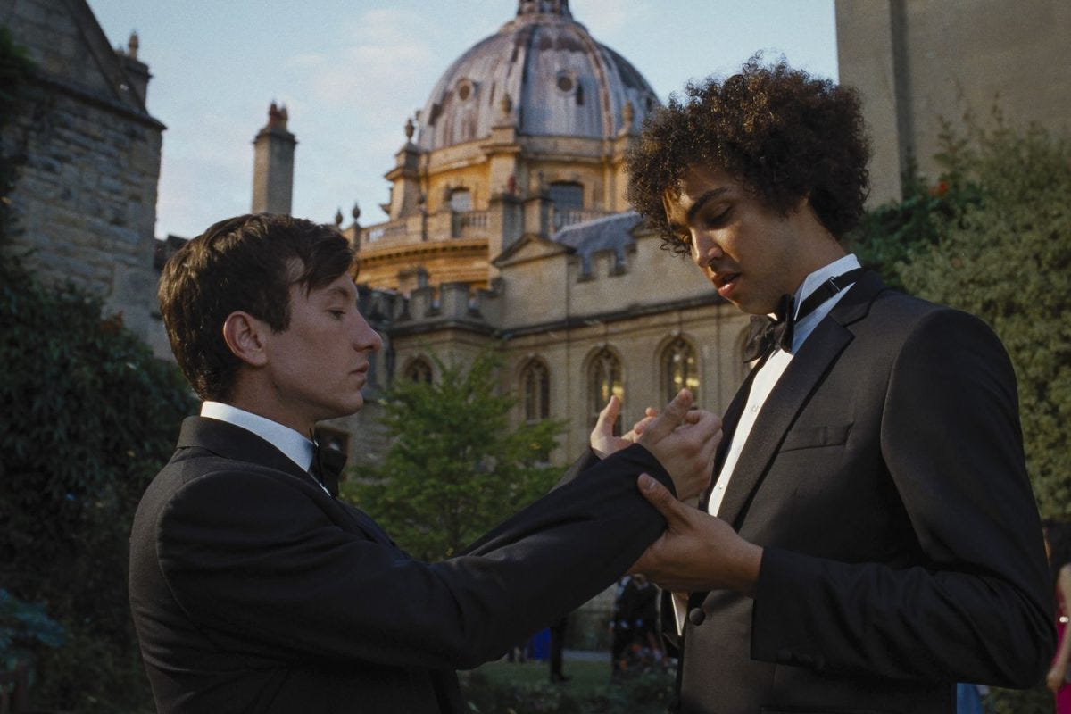 When we first meet Oliver, played by Barry Keoghan, he’s an awkward young man struggling to fit in at Oxford. He becomes enamored with his handsome and wealthy classmate Felix, played by Jacob Elordi. Taking pity on Oliver, Felix invites him to spend the summer at his family’s estate, Saltburn. There, lust, longing, and deception make a relaxing summer spiral into a bad acid trip amidst the stuffy and peculiar backdrop of British old money.