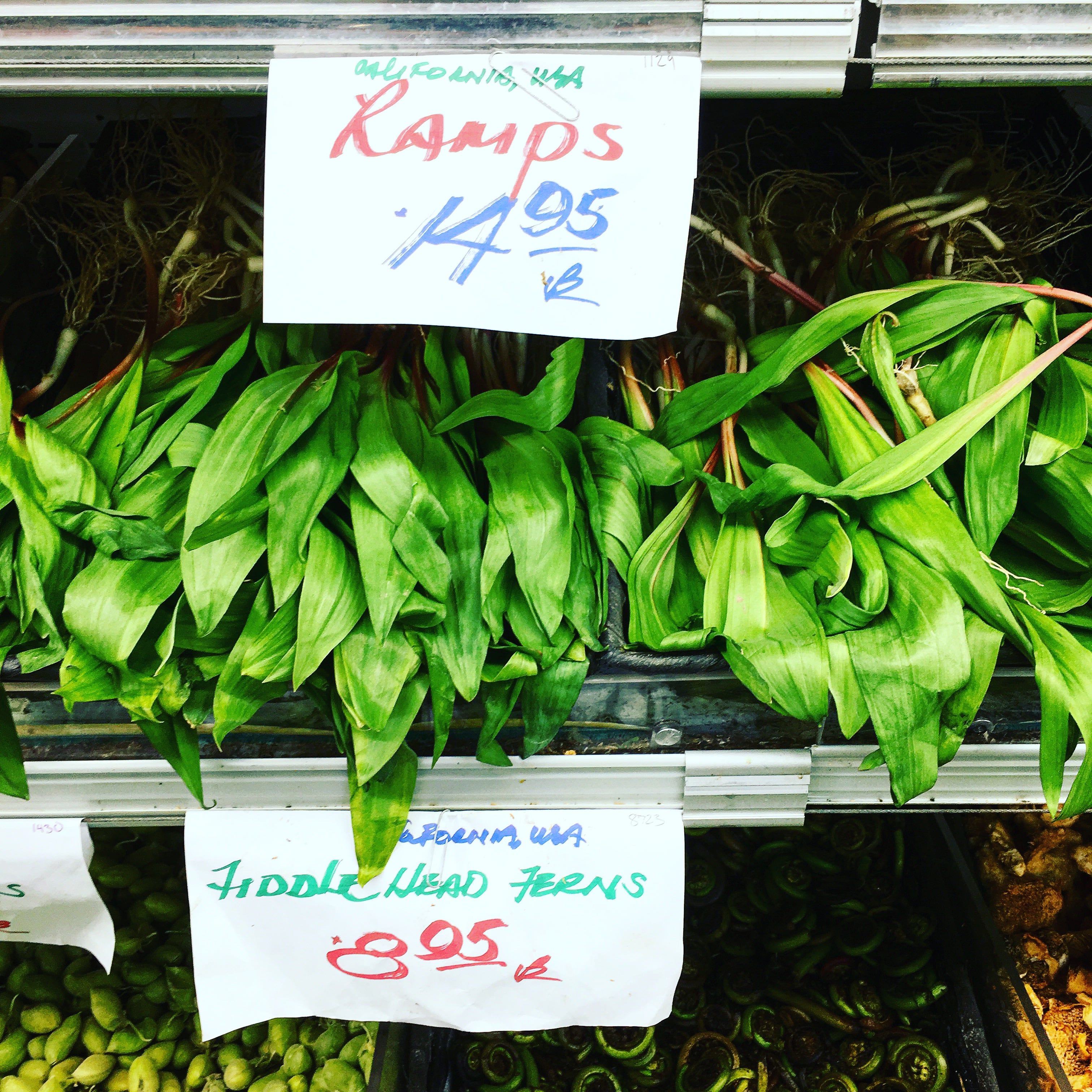 Then there are the esoteric vegetables: daikons as long as my arm, and sunchokes and celeriac straight out of a gnome’s garden. There are things you could easily just feed to your rabbit instead like dandelion greens, things that don’t sound very fun to eat like bitter melon, and things that look like the detritus left over after weeding your garden, like the curly qs of fiddlehead ferns. I find myself most consistently fascinated by the romanesco, a niche cultivar of broccoli that resembles what MC Escher would come up with if he were commissioned to design a vegetable. If you shop during the right few weeks each spring you may even find ramps, the wild ancestor of onions and leeks that must be foraged by hand.